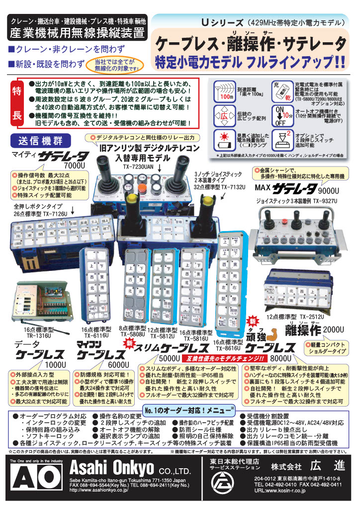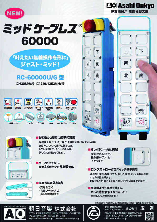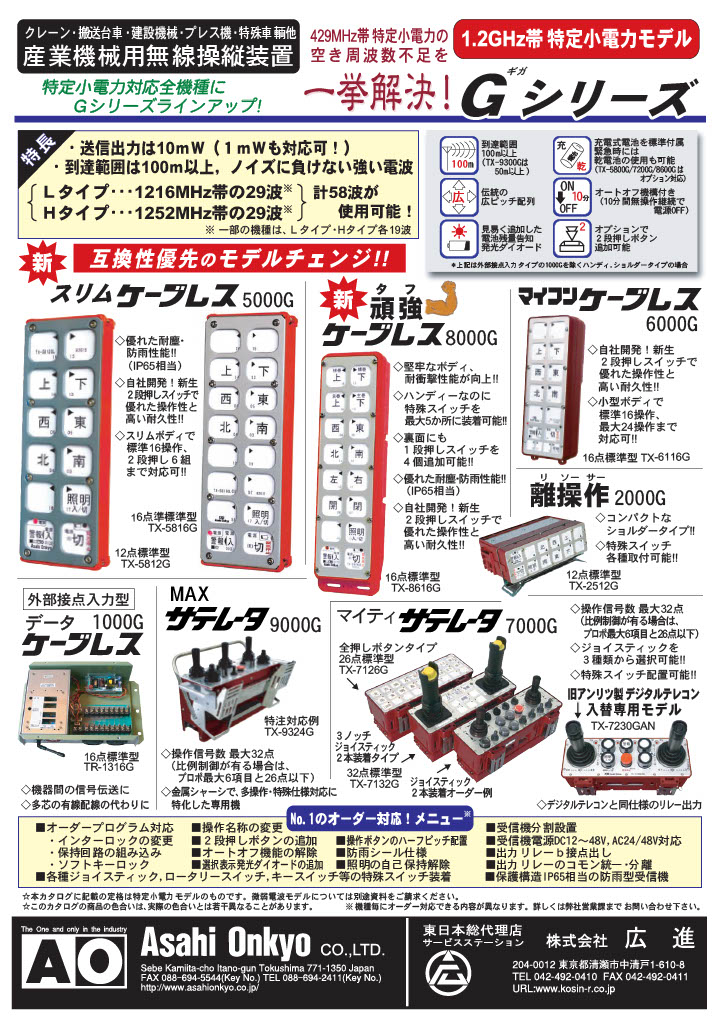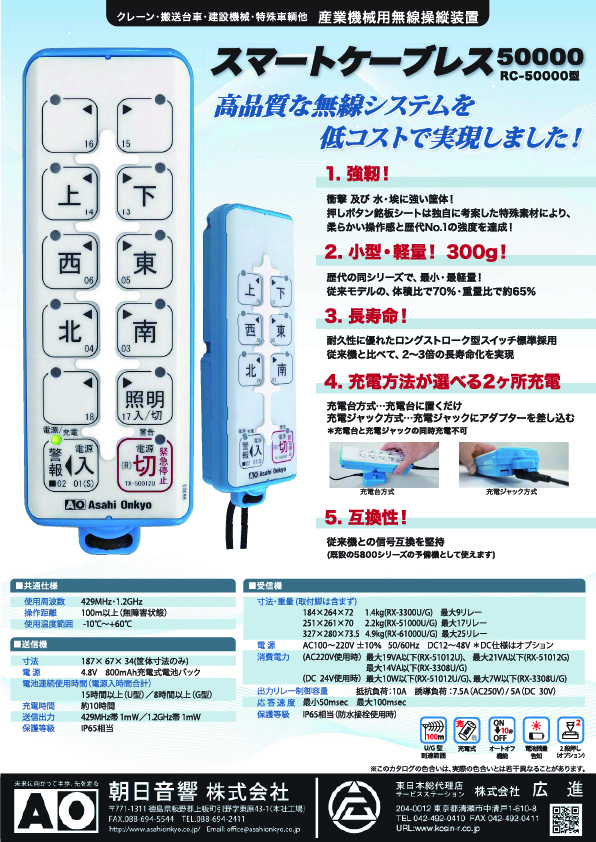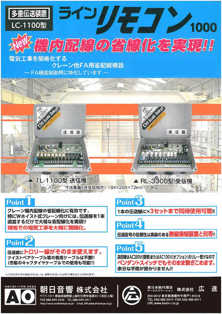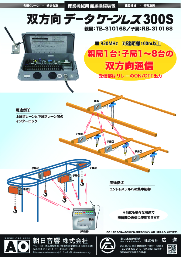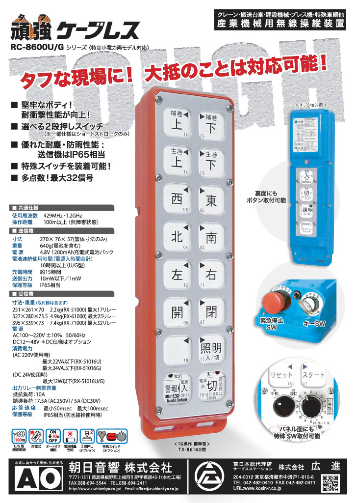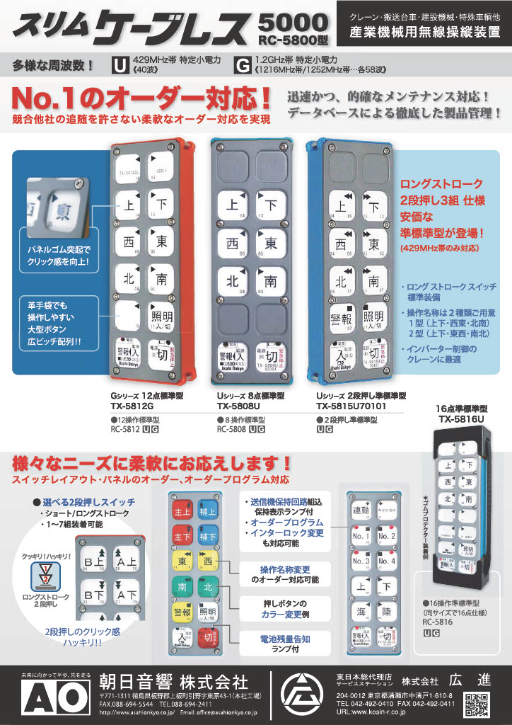 広進では、クレーン・産業用無線操縦装置メーカー 朝日音響株式会社の東日本総合代理店