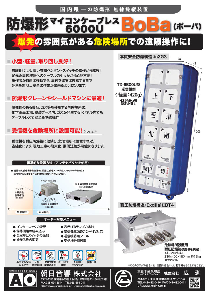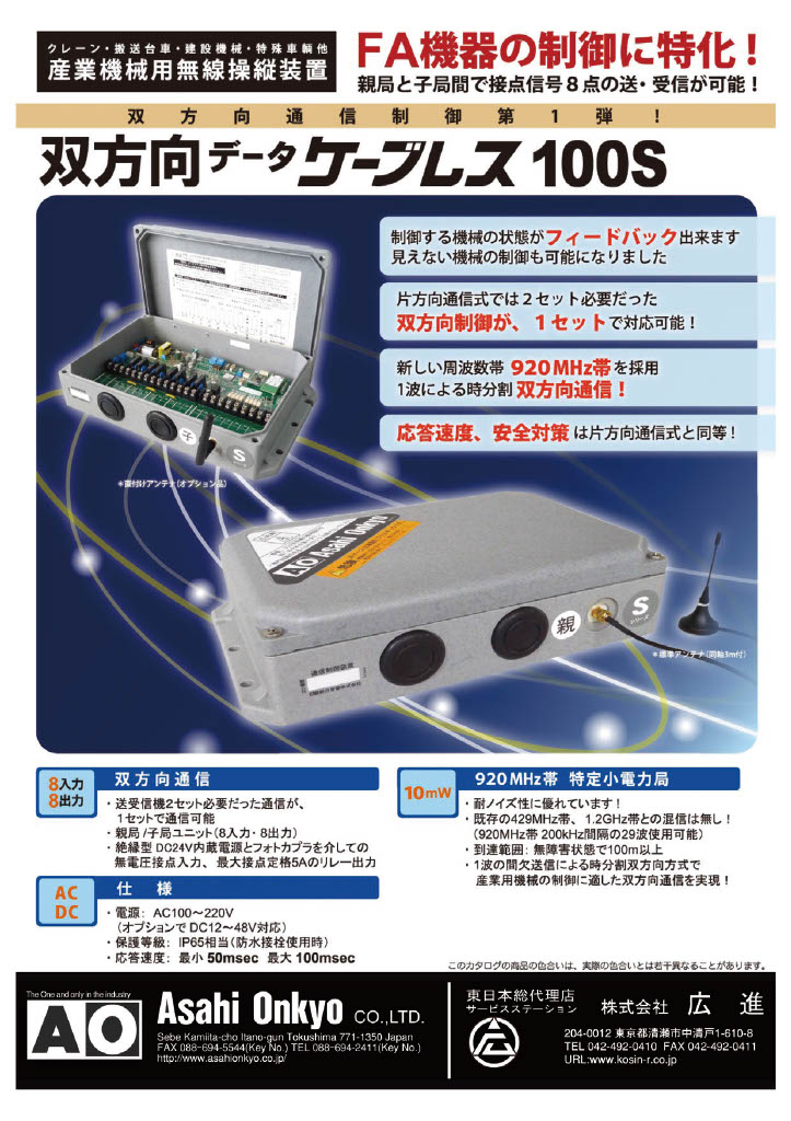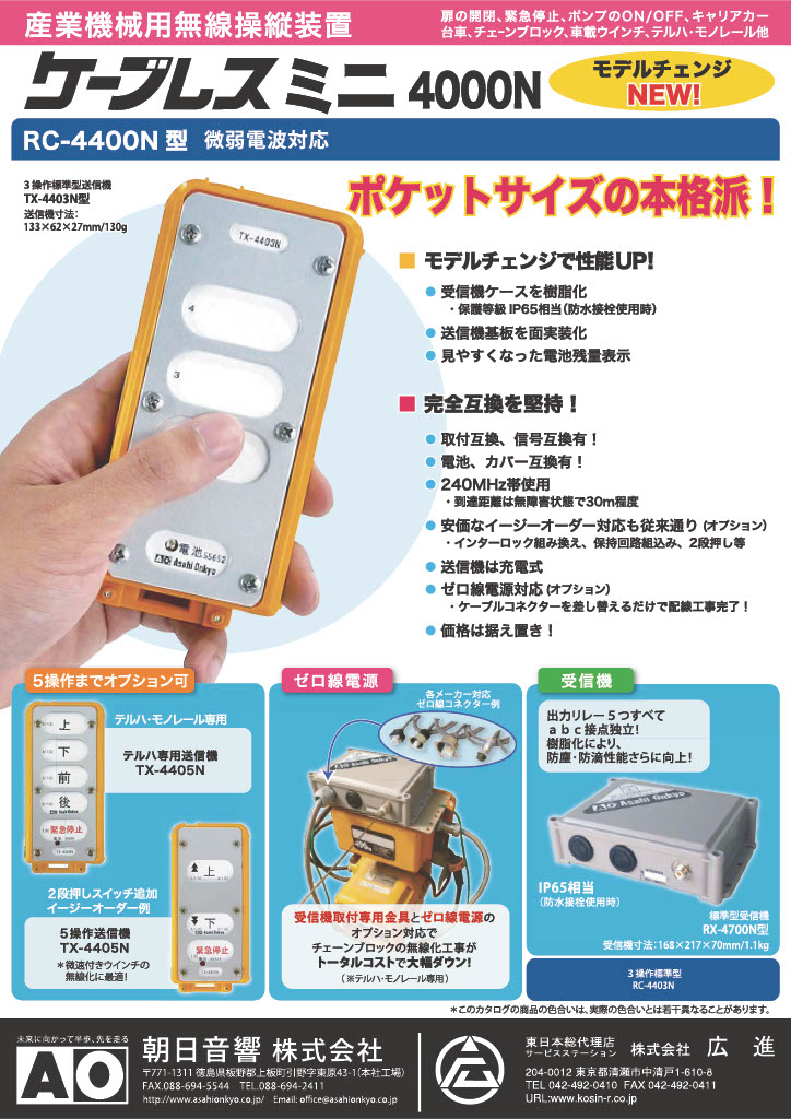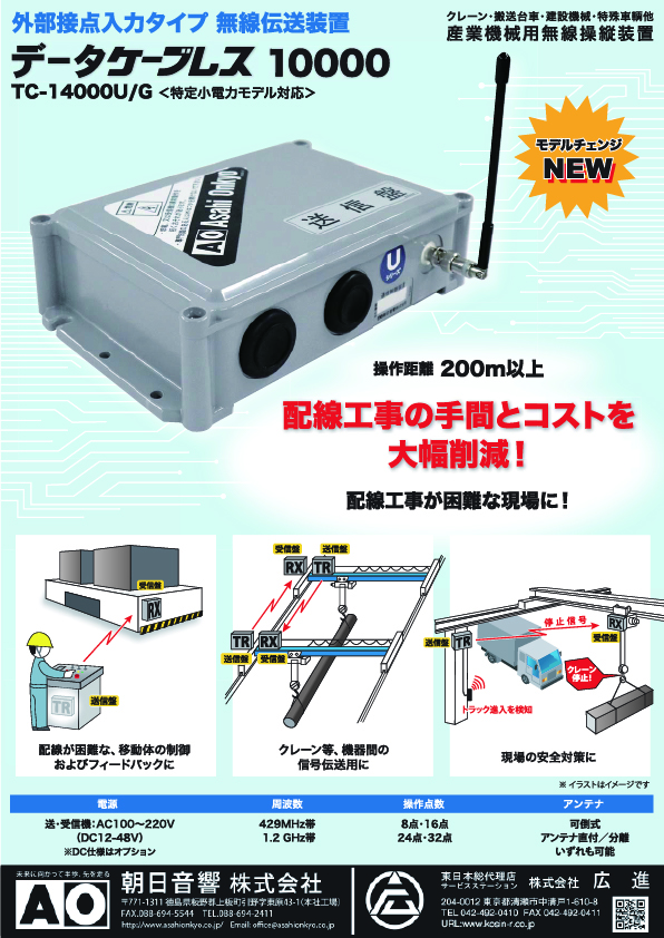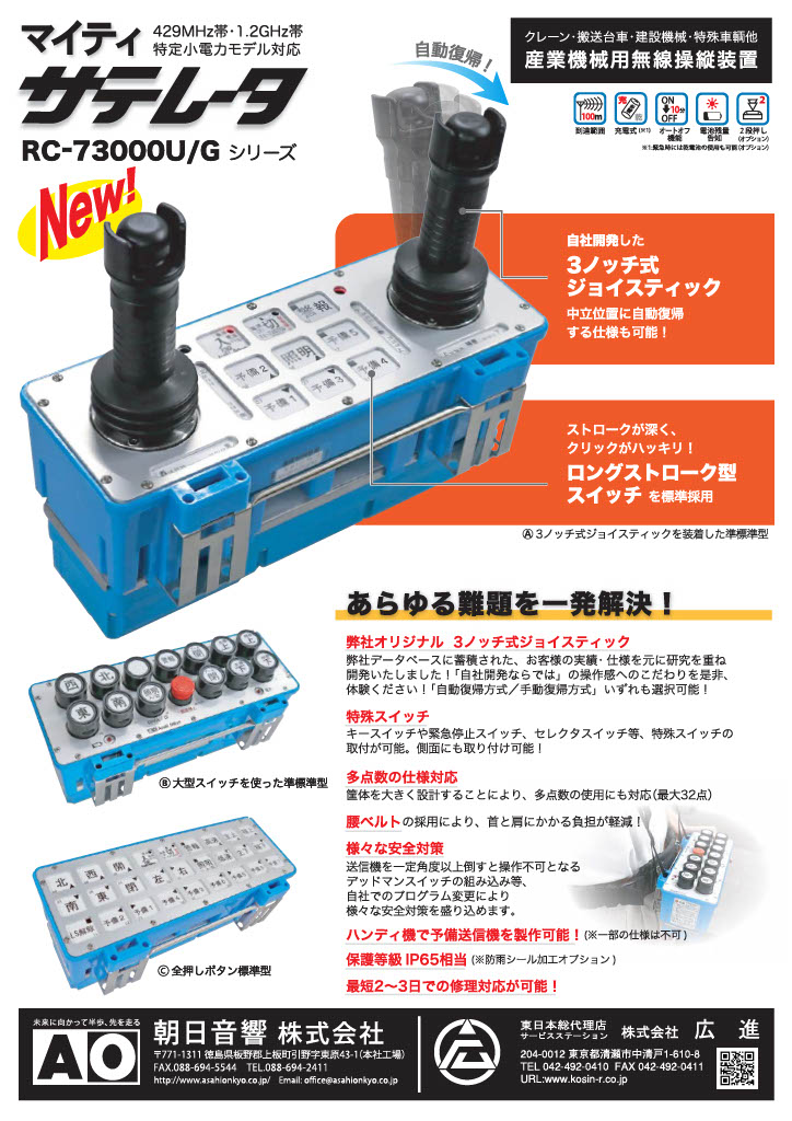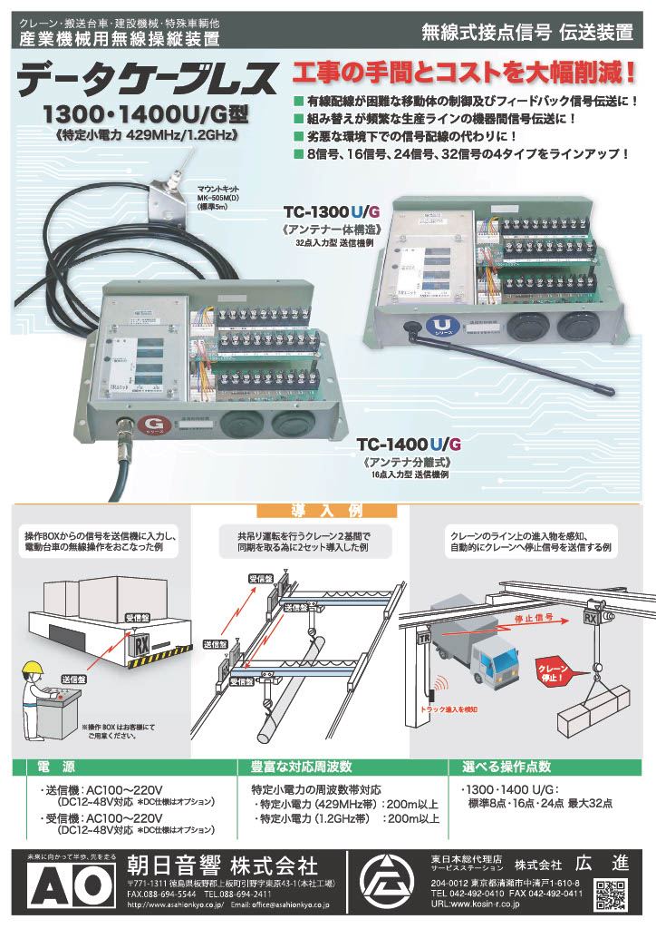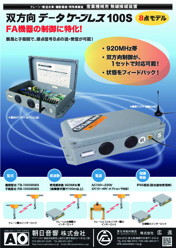 広進では、クレーン・産業用無線操縦装置メーカー 朝日音響株式会社の東日本総合代理店