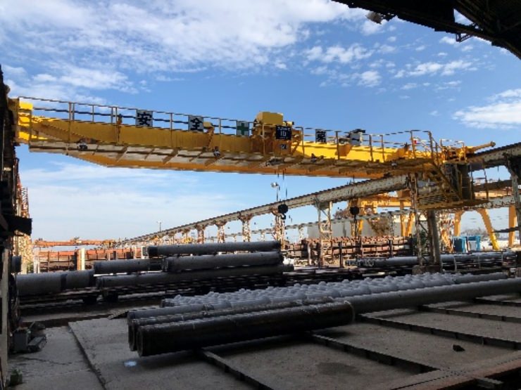 今までは2台のクレーンに付いている押釦スイッチ2個を両手で操作しながら、長尺製品の移動を行っていましたが、今は1台の送信機でクレーン2基を選択する事ができて片手で操作が行えるので、クレーン同士のずれもなくなり、自分が移動先に先回りして操作が出来て、本当に便利になりました。