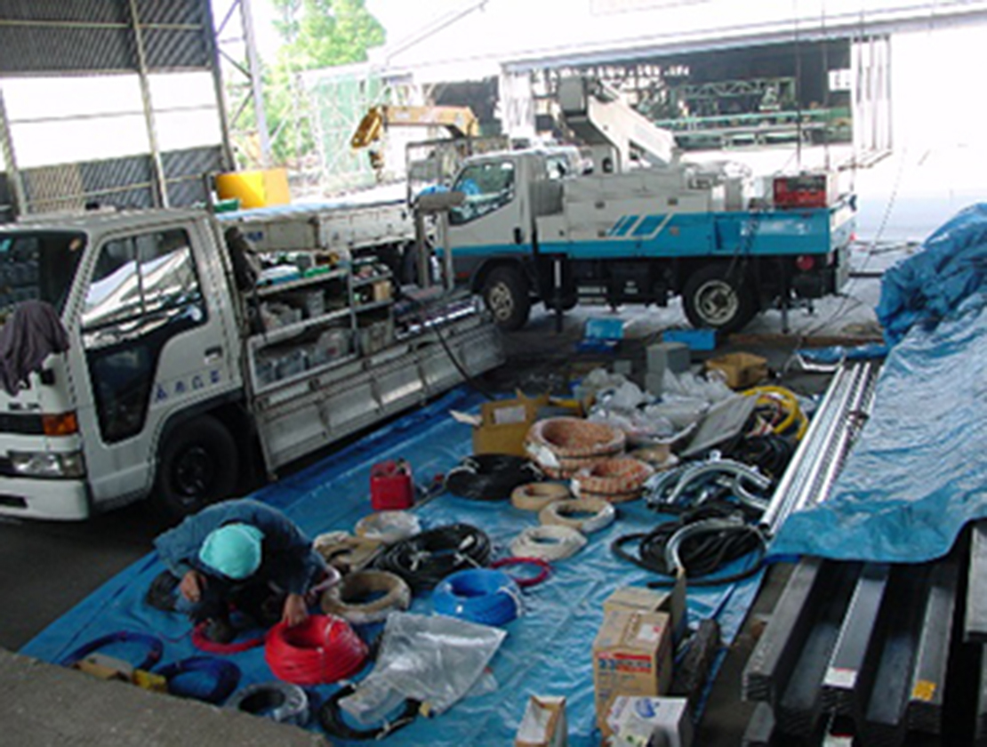 無線化工事を行う前は、トラックからの荷下ろし作業が終わっても、機上運転室のオペレーターは次の荷下ろし作業まで運転室で待機している時が有り、作業を行う時も玉掛作業者と運転室のオペレーターと間で合図をとりながら、常に2人で荷下ろし作業を行っていました。無線化工事を行ってからは、機上運転室にオペレーターが必要無くなり、地上でクレーンの操作と玉掛作業を1人の作業者で行える様になったので、少ない作業員で効率良く作業が出来る様になりました。