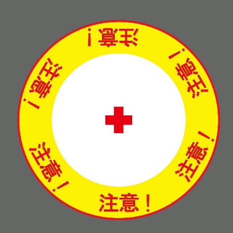 方向確認以外にも“頭上注意”、“立入禁止”、“危険”、“STOP”等の色彩マークなど現場や目的に合わせてカスタマイズすることが可能です。